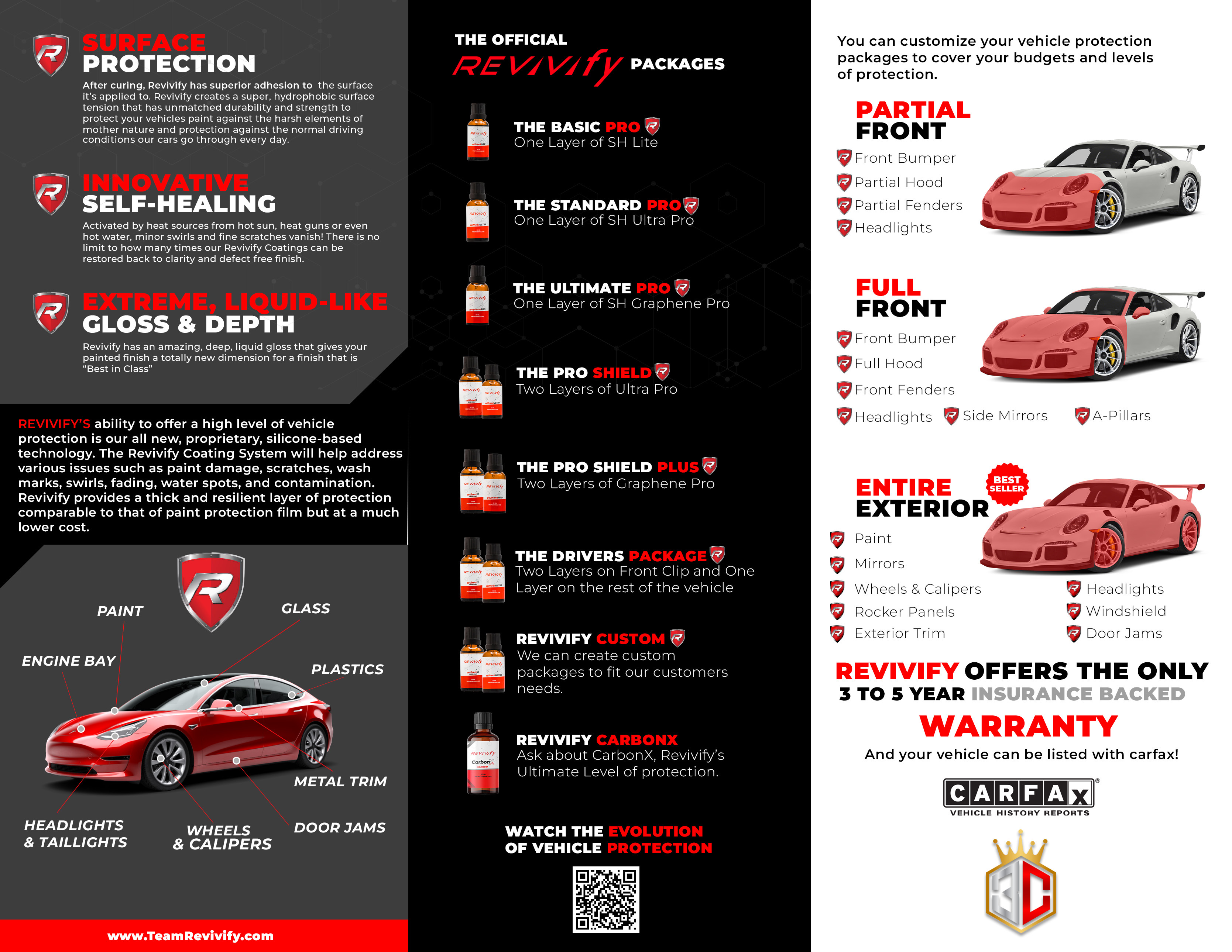 Not all coatings are created equal. Choose the Revivify package that delivers the right balance of durability, gloss, and self-healing technology for your needs.